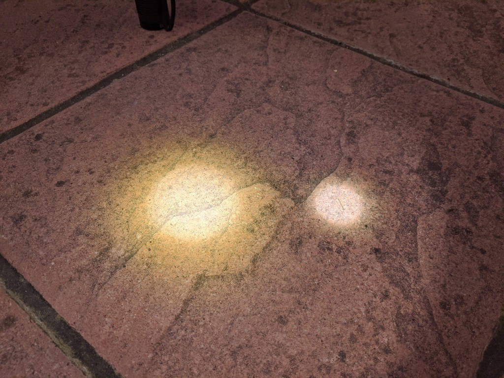 Here’s the MC12’s beam next to the FT03. The FT03 is 6 times brighter but only throws a little further.