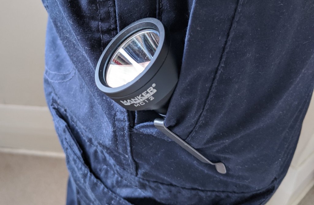 Manker provide a lanyard and a pocket clip with the MC12. At first, it looks like the pocket clip only goes 1 way, meaning the light can only be carried head down. Whilst the clip isn’t reversible, the body tube it’s attached to it. I’ve switched mine round, so the light is carried with the body in a pocket.