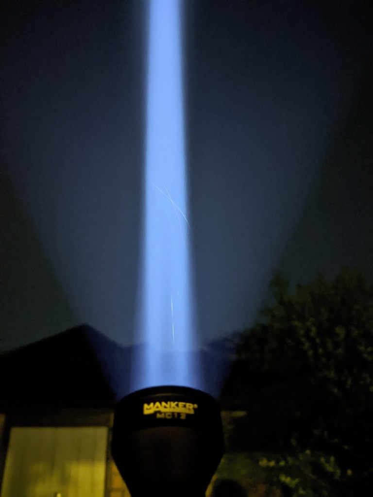 The Manker MC12’s pencil beam produces sone backscatter, even when it’s not foggy at all.