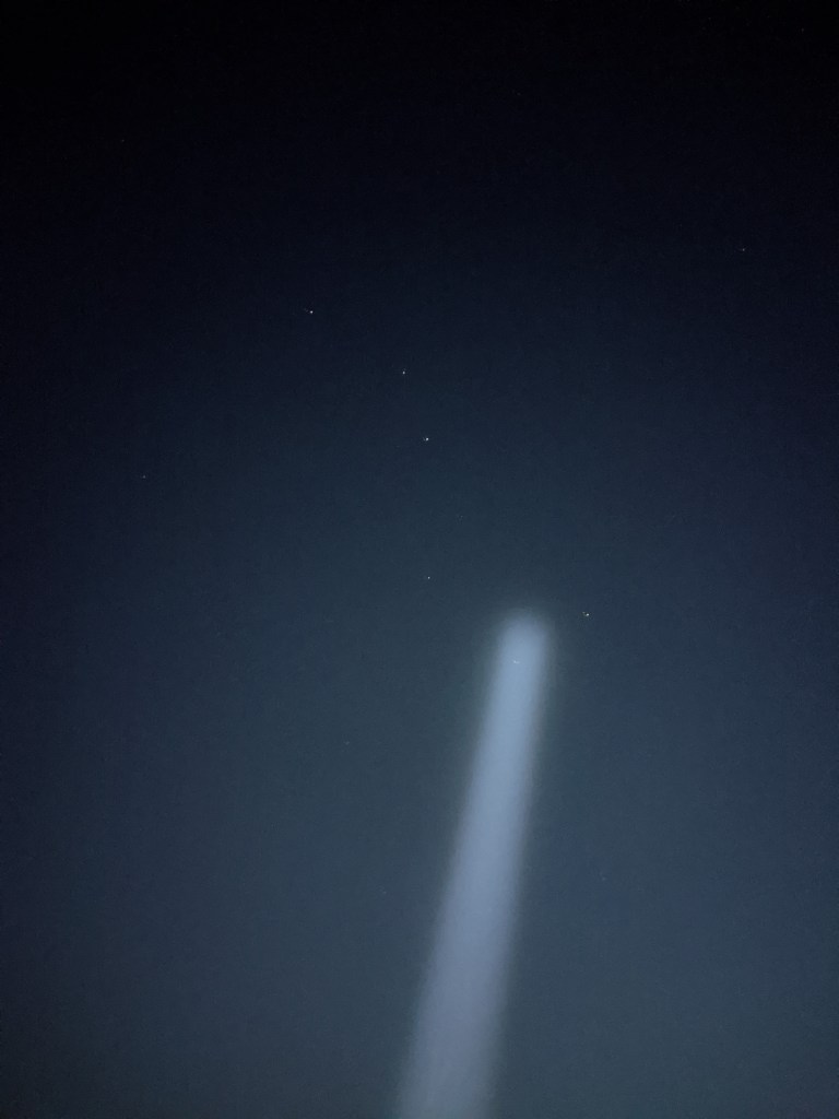 Like a laser beam, it’s good for pointing at things too, not just lighting stuff up. Here’s the MC12 pointing at the Big Dipper (Plough in the UK).