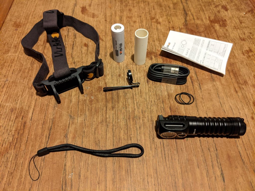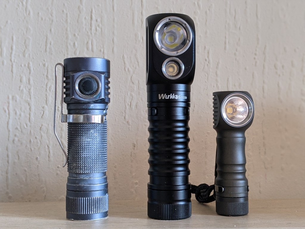 The Wurkkos HD20 flashlight is a right angle headlamp with a 21700 cell and 2 LEDs.