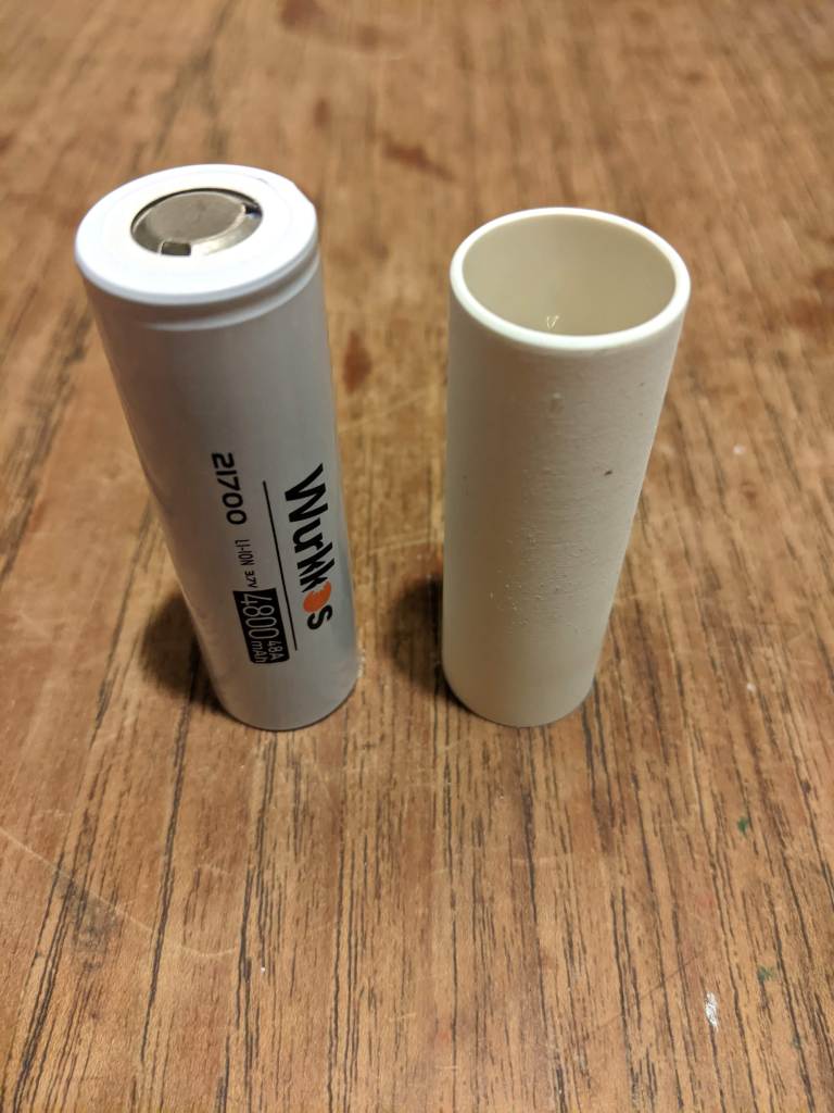 The HD20 comes with a generous 4800mAh 21700 cell. This is the highest capacity 21700 cell I have, with most of them being 4000mAh. The cell is Wurkkos branded and measures 71.1mm long. The box includes a plastic tube so you can use a 18650 cell too. A 65mm 18650 cell worked fine in the HD20, without disconnecting when it was shaken.