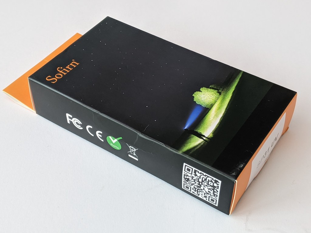 You may have already seen Sofirn’s white LED SP31 flashlight. It’s a dual switch flashlight with an 18650 cell and a CREE XP-L HI LED. Sofirn have reused the host from their SP31 and replaced the XP-L HI with a 365nm UV LED.