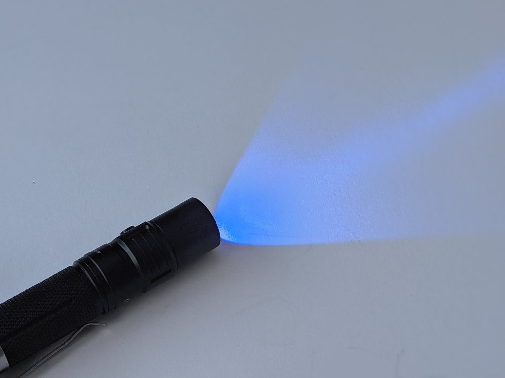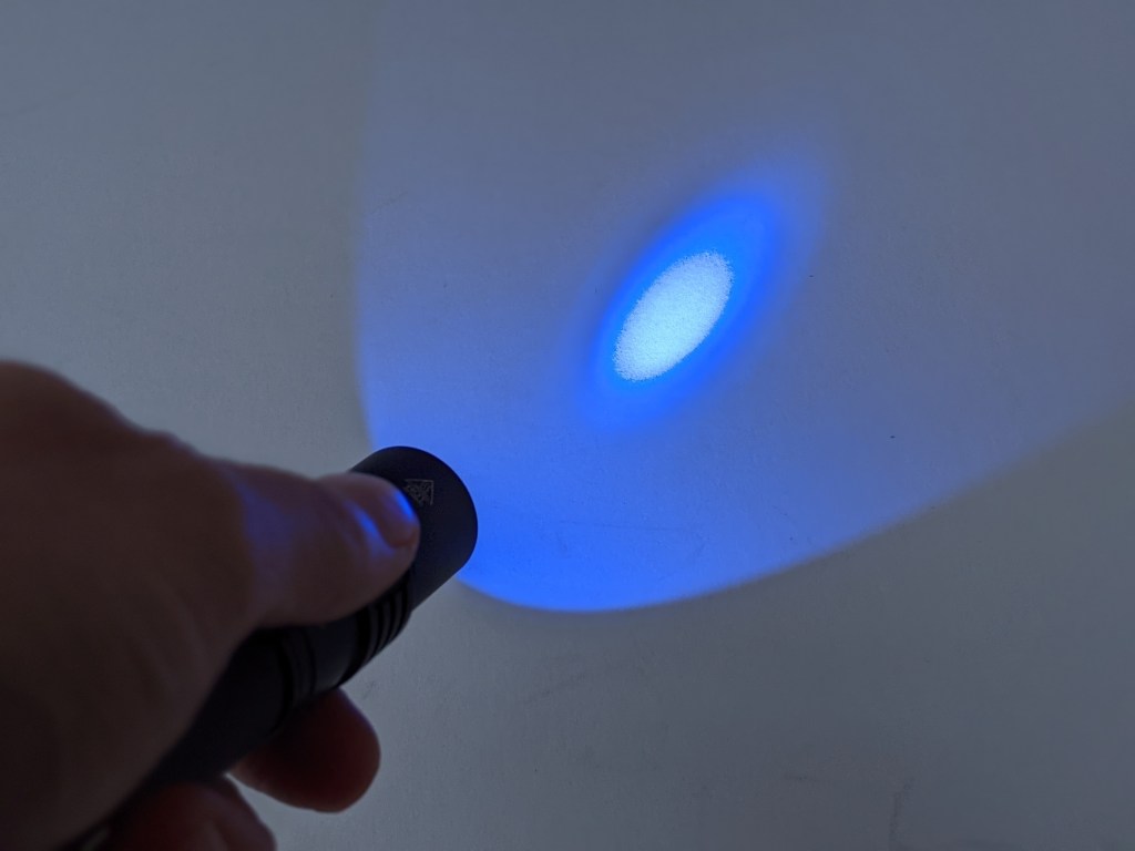 Warning: this is a UV light! Don’t shine it at anyone’s eyes!
