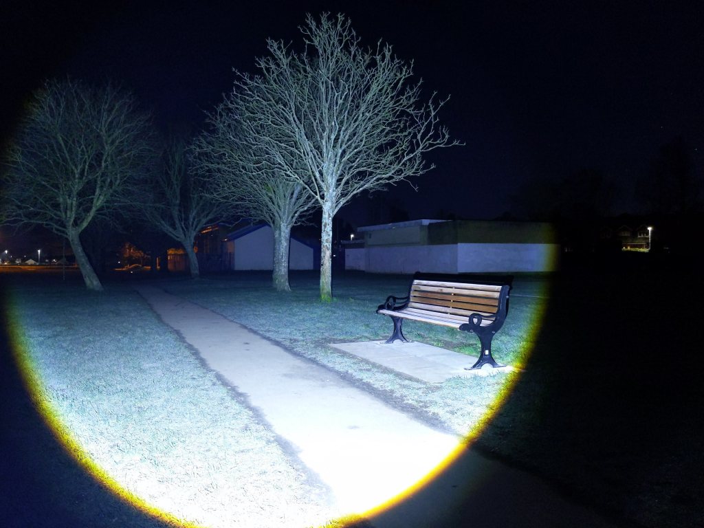 Unfortunately, the 4000K has a fair bit of tint shift between hotspot and spill. The orange peel reflector alleviates this a bit but it’s still very noticeable. Aside from the tint shift, the beam profile is very good and doesn’t suffer from rings or donuts. The large XHP70.2 LED makes the light more of a general-purpose light than an especially throwy one.