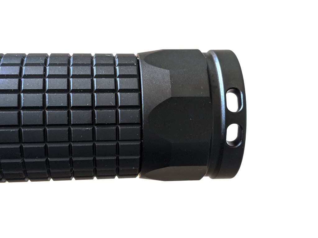 There’s knurling if you can call it that, but it isn’t really like knurling on most flashlights. Instead of 1mm sized bumps the body tube is covered in lots of 3mm by 5mm rectangles. These provide good grip.
