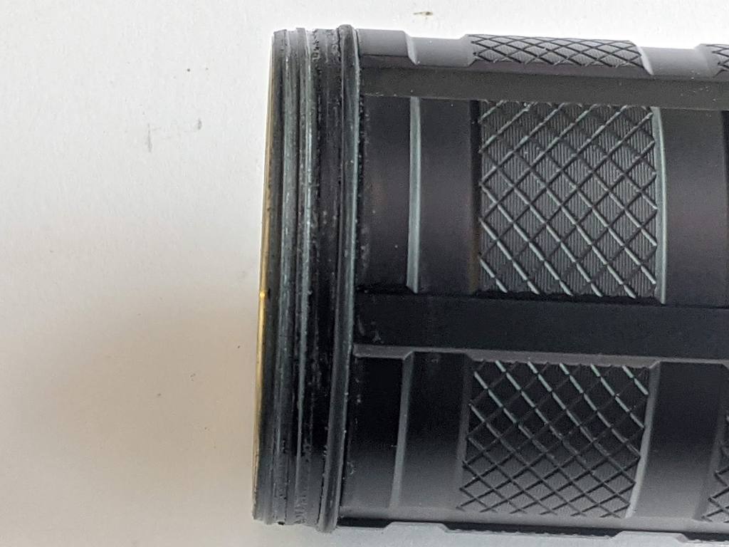 There’s no lanyard included and no attachment point. I’m planning on attaching some paracord round the body tube, which should stay on thanks to the indentations.