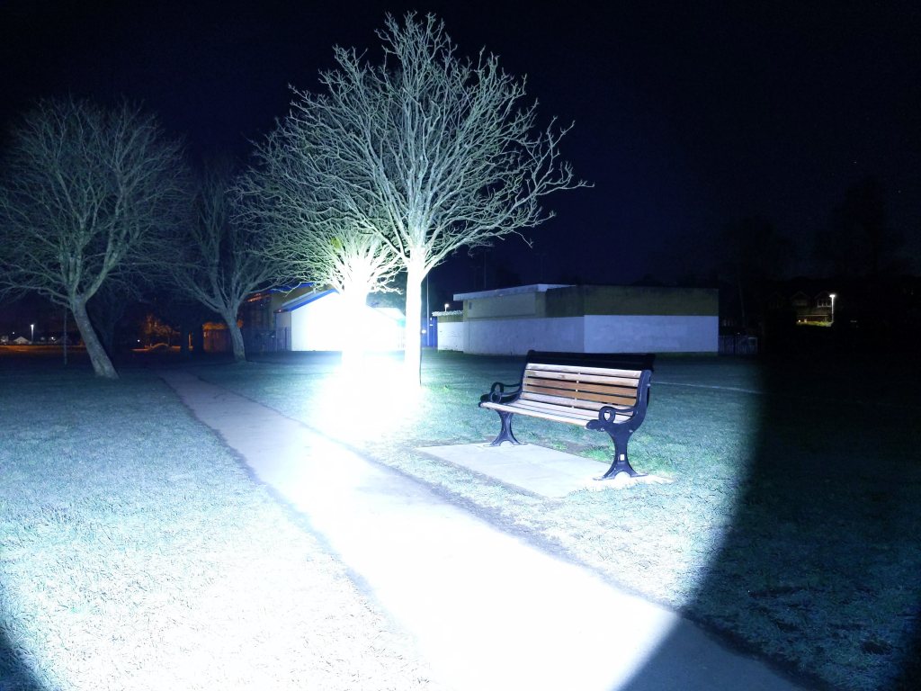 Its size, coupled with the SBT90.2 LED means that it gets hot faster than a bigger light like the Imalent RT35. As well as throwing further, it’s also much brighter than any of the Osram throwers I have.