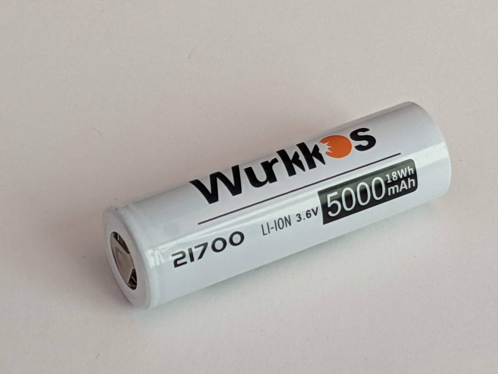 Wurkkos provide a cell adaptor in the box, so you can use 18650 cells or 21700 cells. The box came with a 5000mAh 21700 cell.