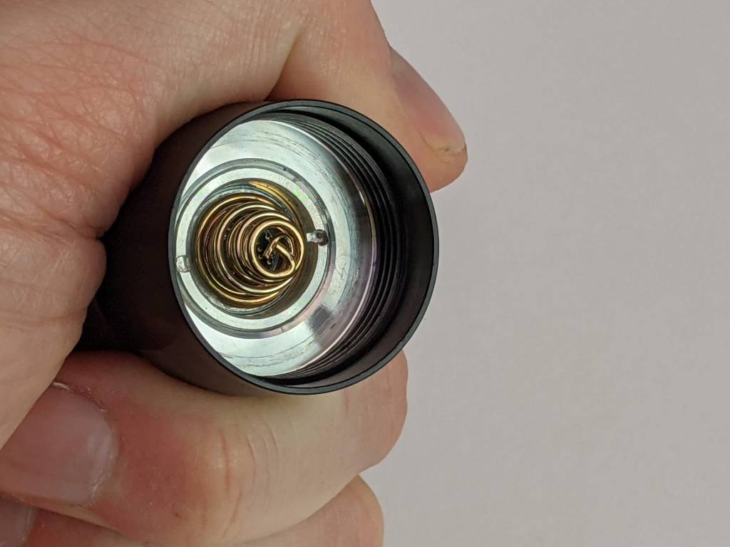 There’s 2 lanyard holes in the tail: 1 on each side. When the lanyard is attached then the string makes the TS30 a bit harder to tail stand. Some light (like the Sofirn C8 lights) have a pair of holes next to each other, so the string can stick out the side instead. Not a big deal but a slight oversight.