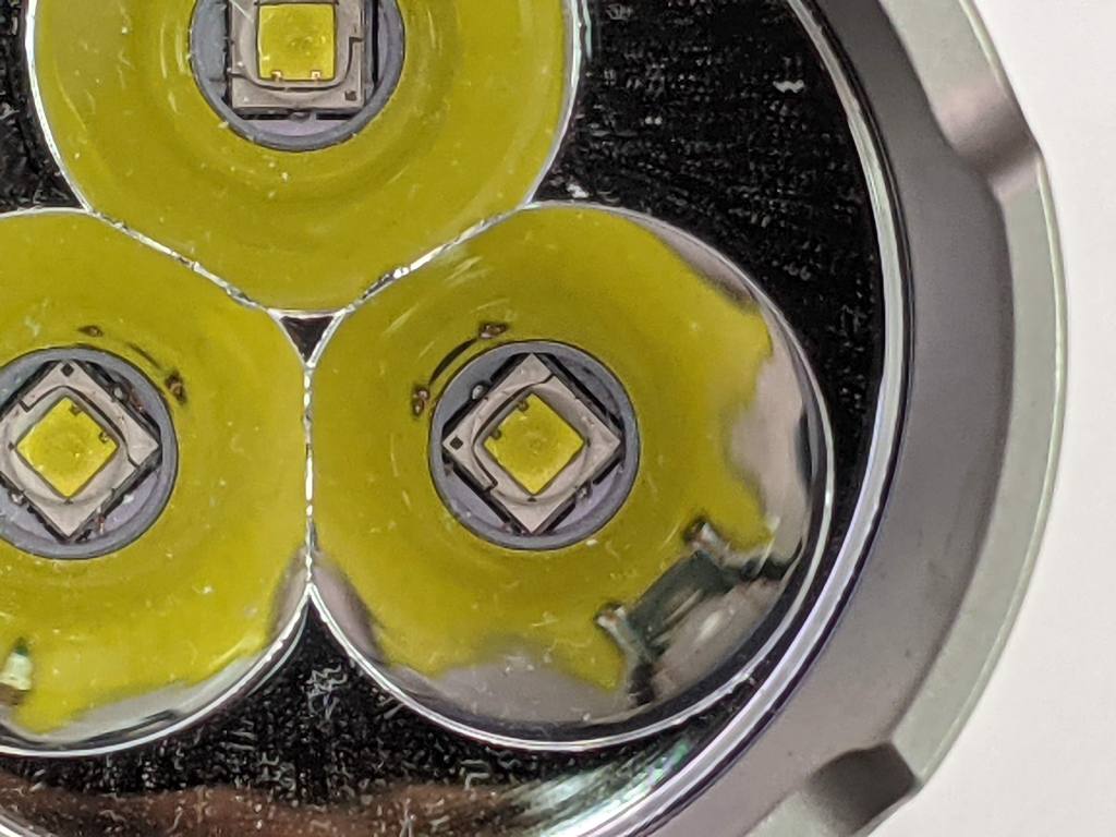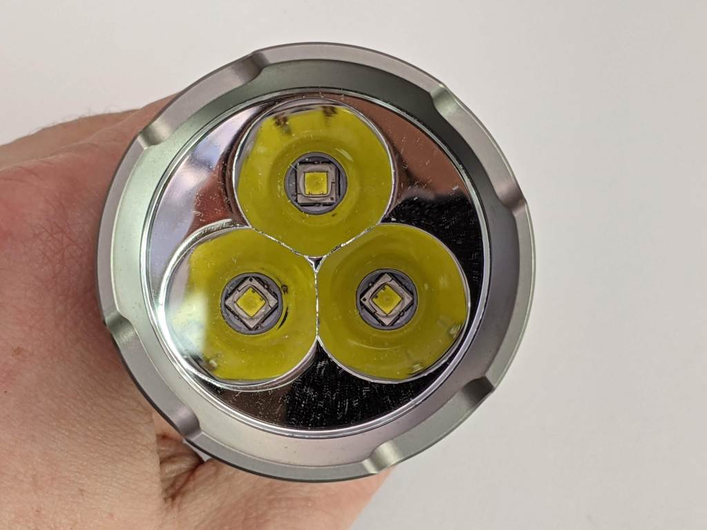 The 3 reflectors barely overlap. This means the beam profile is very similar to a single reflector LED and there’s almost no flower petal shape. I prefer this design over the overlapping reflectors of the Astrolux FT02S.