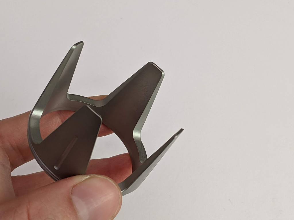 The spiky one is massive! Just look at it! It’s not sharp but may make holes in a jacket pocket and could potentially be used as a weapon. It’s more useful for lifting the light up when head standing, so you have a mini lantern.