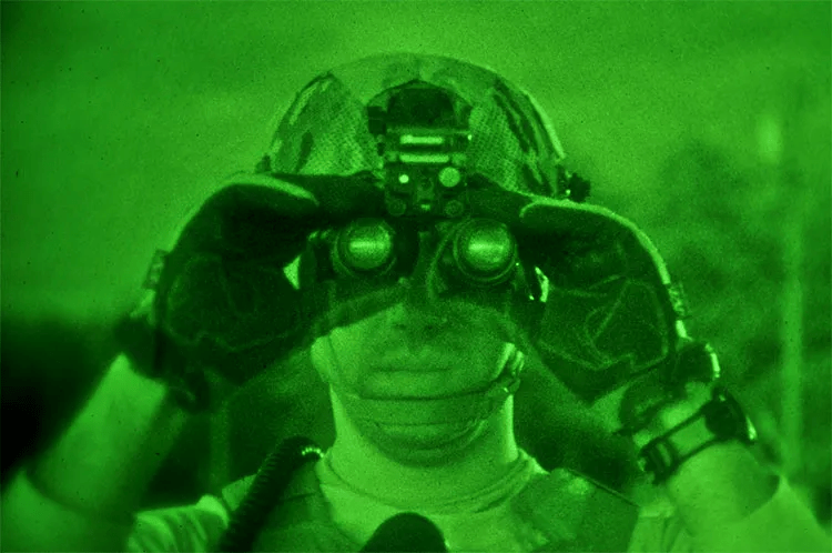 Infrared light has a wavelength above 700 nm and can’t be seen by human eyes. That means you need special night vision equipment to be able to see it. Night Vision Goggles (NVGs) or Night Vision Devices (NVDs) in general allow you to see in the dark without others seeing you. NVGs are used by law enforcement, military and hunters.