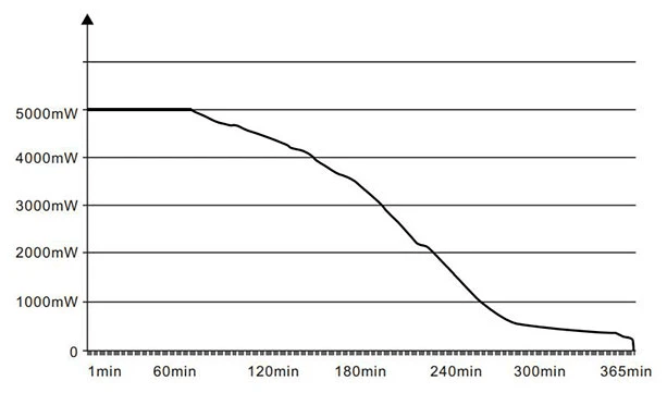 Cyansky has a runtime graph which shows output dropping to about 50% in 3 hours.